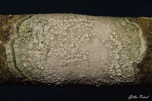 | Parmelina pastillifera (Harm.) Hale 1976. (Isidies en boutons, laissant une cicatice, x 40). (Parmeliaceae)  |